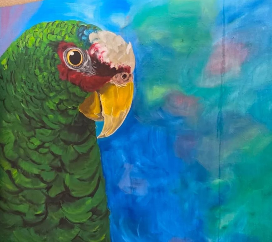 Mural monumental de loro frente blanca impulsa arte y conservación en Mérida