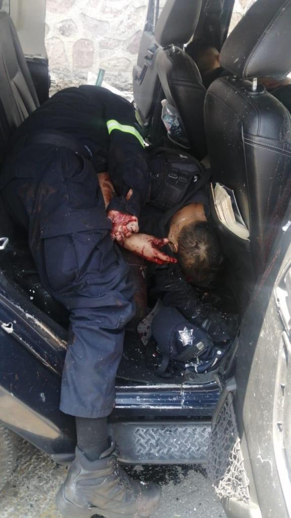 Los efectivos viajaban en una patrulla de la policía estatal y una camioneta blanca Pick Up, Chevrolet, a bordo de las que fueron rafagueados.