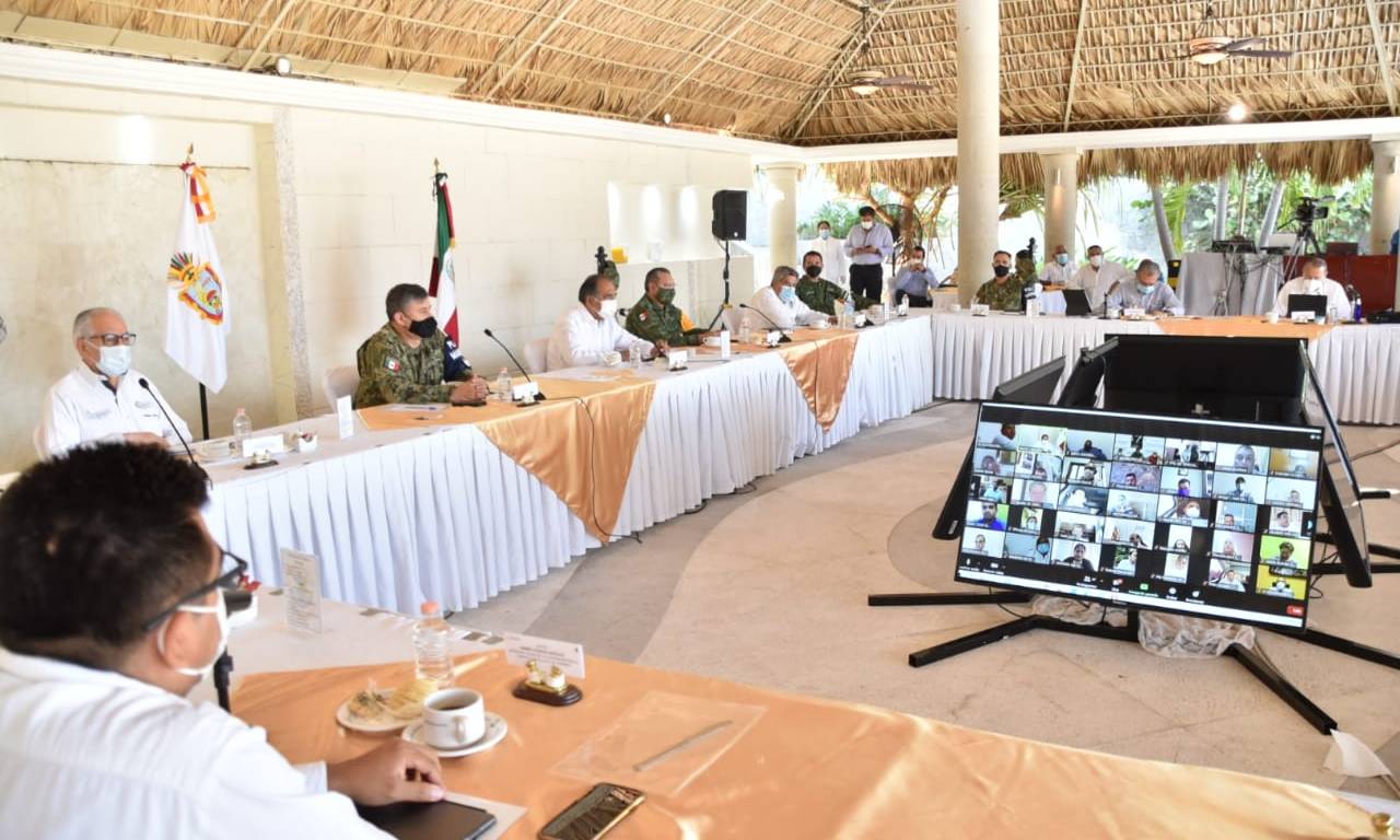 Astudillo Flores, junto con las autoridades de la mesa para la Construcción de la Paz, se reunió con alcaldes de Guerrero para revisar los protocolos sanitarios que los tres órdenes de gobierno aplicarán este periodo vacacional de Semana Santa, para reducir los riesgos de contagios por Covid-19, entre la población local, prestadores de servicios y vacacionistas, así como mantener el equilibrio económico basado en la actividad turística.