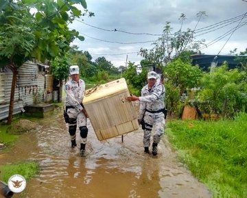 Destacó que la Secretaría de Marina trabaja en el desazolve de ríos con dragas; están en funcionamiento cárcamos para limpiar el agua que se vierte en el río Grijalva y ya comenzó la modernización del malecón de la ciudad de Villahermosa.