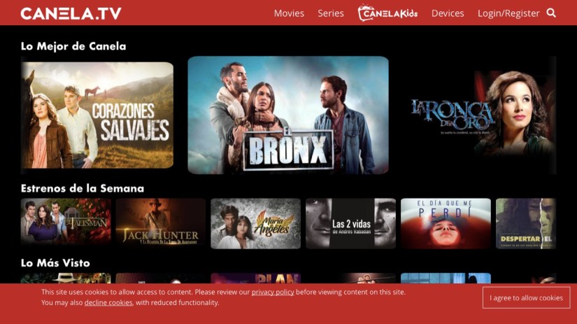 Entre las categorías a las que los consumidores tendrán acceso están películas, series, documentales y novelas, incluyendo producciones de Caracol Televisión, RCN, Polka, Atr3s Media y más. Algunos ejemplos del contenido relevante que se puede disfrutar en Canela.TV México incluyen: