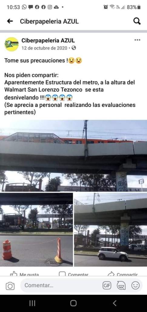La noche de este lunes una estructura de la estación del metro «Olivos» colapsó, cayendo un convoy del sistema de transporte de colectivo metro y partiéndose en dos; de manera extra oficial se sabe que hay ocho personas que perdieron la vida y unas 80 más heridas.