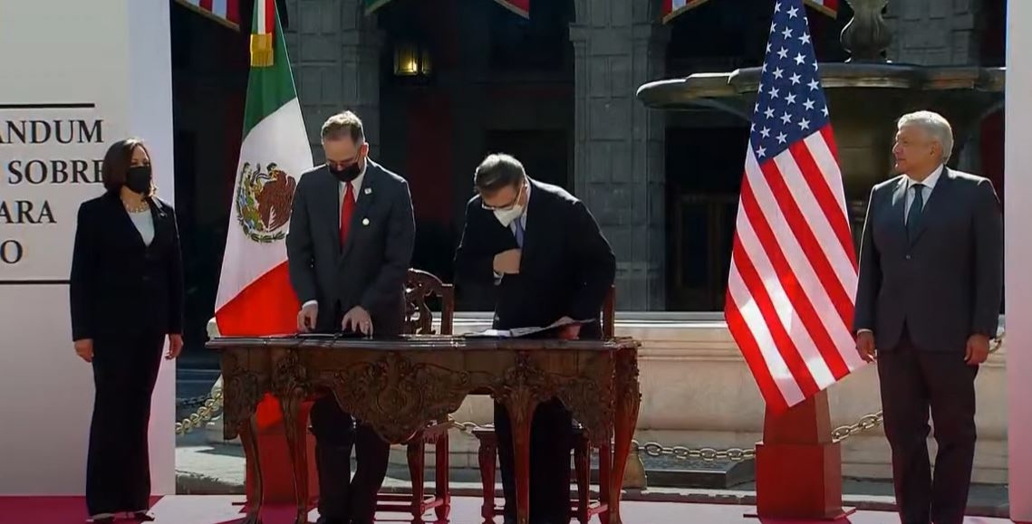 La vicepresidenta de los Estados Unidos, Kamala Harris, llegó a las 10:00 de la mañana al Palacio Nacional donde tendrá una reunión con el presidente de México, Andrés Manuel López Obrador.