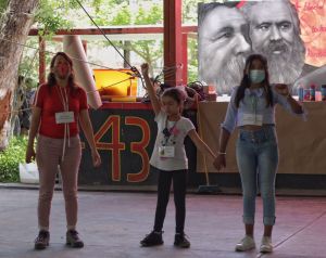 A través del arte y el juego, una treintena de menores de dad aprendieron sobre los conceptos de solidaridad y empatía, de la mano de diferentes colectivos, incluidos familiares de los 43 normalistas desaparecidos en septiembre de 2014.
