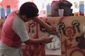 El encuentro, organizado por el colectivo “Arte que apapacha”, contó con la presencia de organizaciones como la Brigada Humanitaria de Paz Marabunta y el Coletivo 88. Teatro, música, tejido, bordado, pintura, cartoneria, e incluso un taller de stencil, fueron algunas de las actividades que se ofertaron a los infantes bajo la consigna “Buscando nos encontramos”.