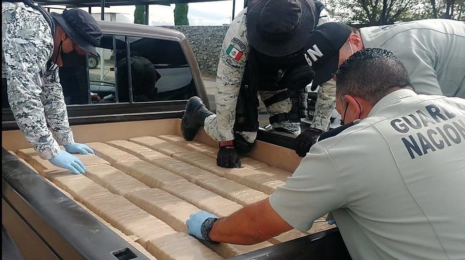 Más de 400 kilos de probable marihuana fueron interceptados por personal de la Guardia Nacional, en el municipio de Doctor Arroyo, Nuevo León, donde se detuvo una camioneta que llevaba la batea sellada para ocultar el enervante.