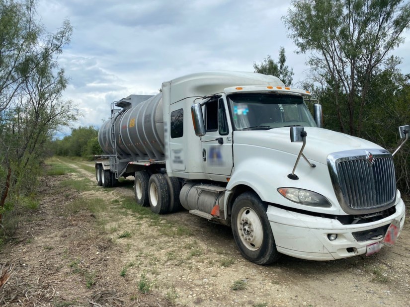 Asimismo, a 200 metros de la toma clandestina descubierta, se encontró, en aparente estado de abandono, un tractocamión, acoplado a un semirremolque cargado al 80 por ciento de su capacidad con gasolina, presumiblemente extraída de dicho poliducto.