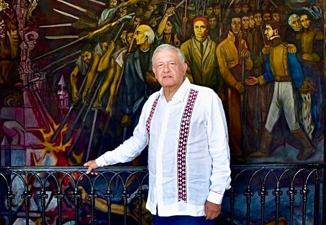 PRESIDENTE ANDRÉS MANUEL LÓPEZ OBRADOR: Nos da mucho gusto estar aquí en este Palacio de Gobierno en Morelia, Michoacán, en este palacio, que es parte de la historia de Michoacán y de México.