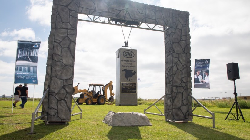 La ceremonia de colocación de la primera piedra de este centro productivo estuvo encabezada por Ricardo Rodríguez, presidente de la región Américas para SIG, Eduardo Gatica, CEO del Clúster Norteamérica en SIG.