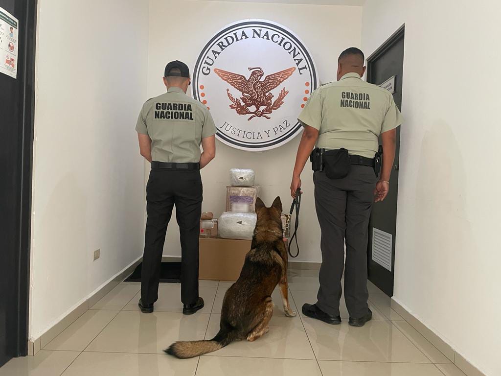 Elementos de la Guardia Nacional (GN), con apoyo de un perro adiestrado detectaron casi once kilos de marihuana en una empresa de paquetería ubicada al interior de la Central de Autobuses de Querétaro.