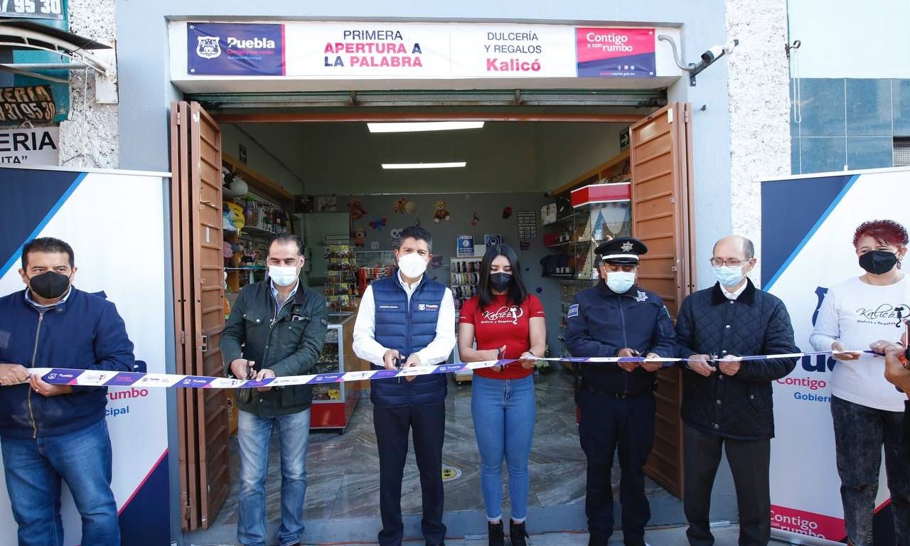 Eduardo Rivera Pérez, presidente municipal de Puebla, encabezó el corte de listón en la Dulcería y Regalos «Kalicó», negocio que entra en funcionamiento gracias a las facilidades administrativas de la estrategia “Apertura a la Palabra”.