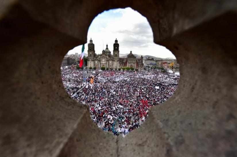 Durante varias horas, miles de personas se congregaron en el Centro Histórico, donde se presentaron grupos musicales que amenizarlo la espera mientras llegaba el mandatario.