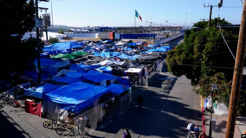 Los vientos helados de un clima más frío de lo normal se filtran en las carpas levantadas junto a la garita del paso fronterizo de «El Chaparral», que une a Tijuana, en México, con San Diego, en los Estados Unidos, y la lluvia se suma a la penuria.