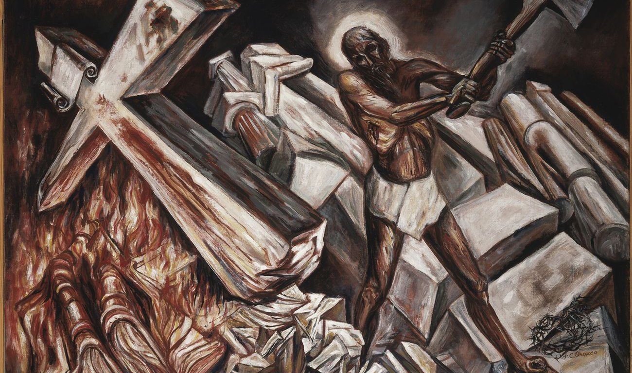 El mandatario federal acompañó su tuit con una imagen del cuadro “Cristo destruye su cruz”, del muralista José Clemente Orozco, en la que se observa a Jesús con una hacha rompiendo la base de su cruz y libros quemándose.