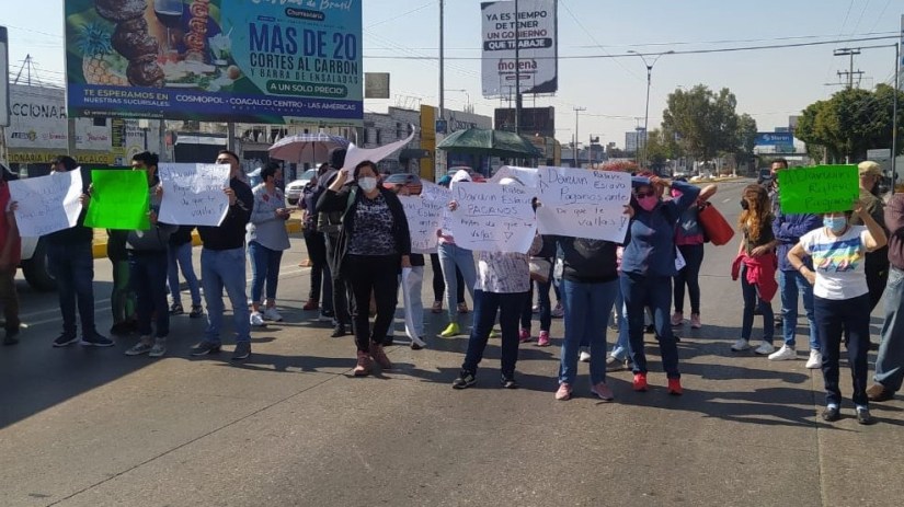 Coacalco, edomex.- Con el grito de «Darwin Eslava, páganos antes de que te vayas», trabajadores del gobierno de Coacalco cerraron la avenida José López Portillo, a la altura de Zarzaparrillas, para demandar sus pagos atrasados y salarios de fin de año.