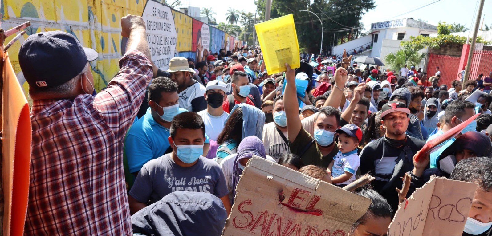 Los migrantes, en su mayoría haitianos, nicaragüenses y venezolanos, se concentraron desde temprano en una protesta afuera del Instituto Nacional de Migración (INM) en Tapachula, fronteriza con Guatemala, para exigir que se agilice la entrega de sus documentos.