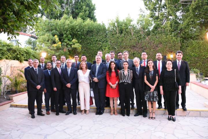 El canciller Marcelo Ebrard y la secretaria de Economía, Tatiana Clouthier, se reunieron anoche, en Los Ángeles, con empresarios mexicanos del Consejo Coordinador Empresarial y la Cámara Americana de Comercio.
