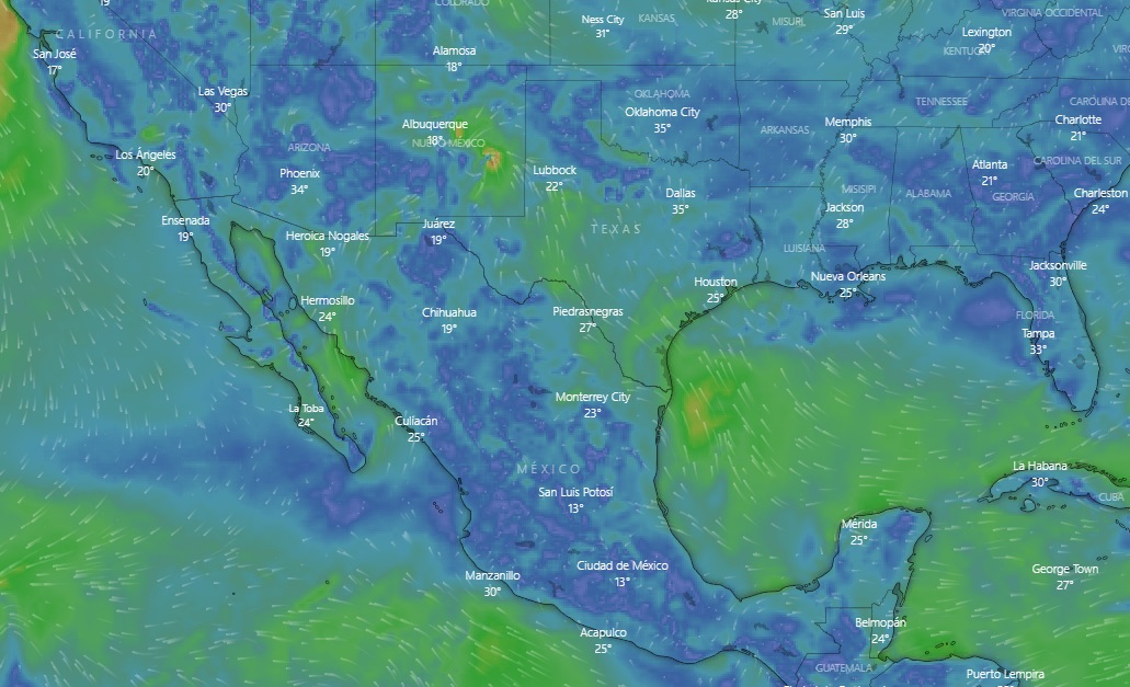 Asimismo, se prevén rachas de viento de 50 a 60 km/h y oleaje de 1 a 3 metros (m) de altura en costas de Tamaulipas y el norte de Veracruz.