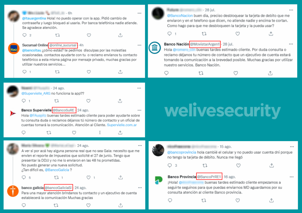 Perfiles falsos en Twitter de bancos que operan en Argentina