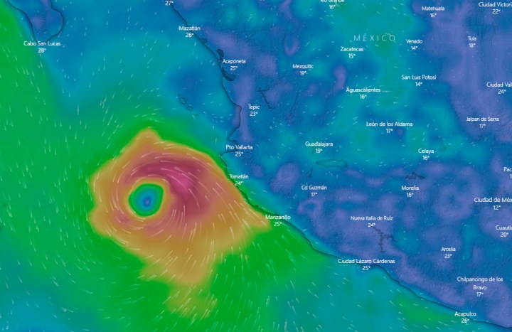 Precisó que el huracán se ubica a 170 kilómetros al suroeste de Cabo Corrientes y a 175 kilómetros al oeste-suroeste de Playa Pérula, Jalisco.