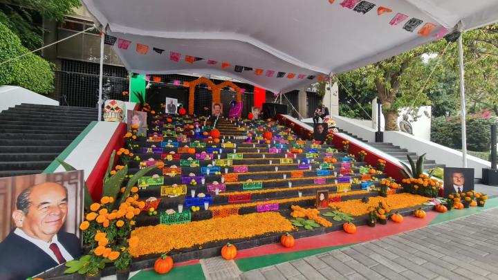 En representación del presidente del CEN, Alejandro Moreno, Rocha Medina encabezó la inauguración de la tradicional ofrenda, que este año fue montada en la escalinata del edificio “Adolfo López Mateos” de la sede partidista.