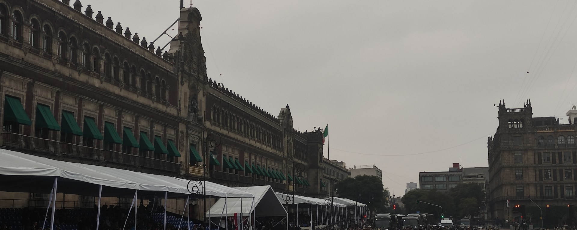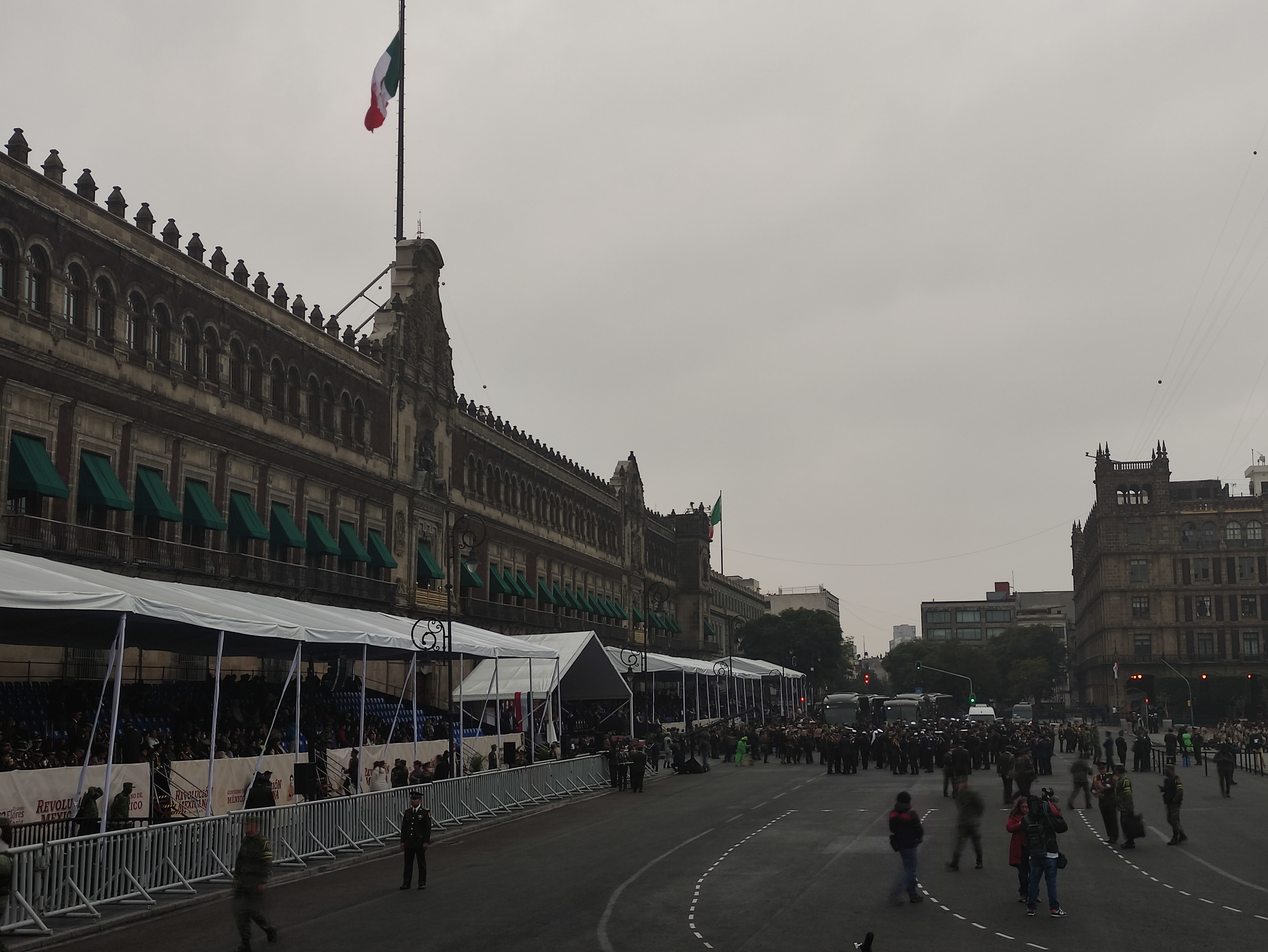 Al rededor de la plaza de la Constitución, se han instalado diversas carpas y, en la puerta principal de Palacio Nacional está instalada la carpa presidencial.