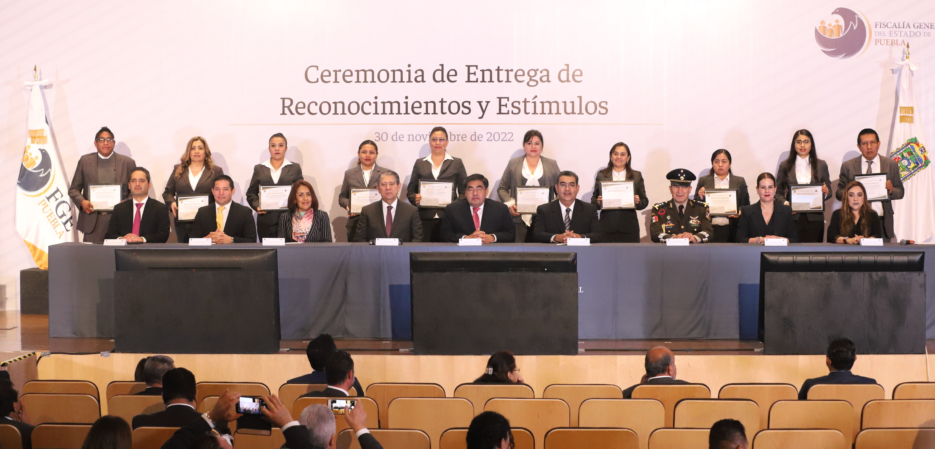 Puebla, Puebla.- El poder Ejecutivo en esta entidad asume su responsabilidad en el combate a la delincuencia, por lo que las acciones en esta materia no cesarán en lo que restan de la actual administración estatal, manifestó el gobernador Miguel Barbosa Huerta al presidir la ceremonia de Entrega de Reconocimientos y Estímulos a Personal de la Fiscalía General del Estado (FGE).