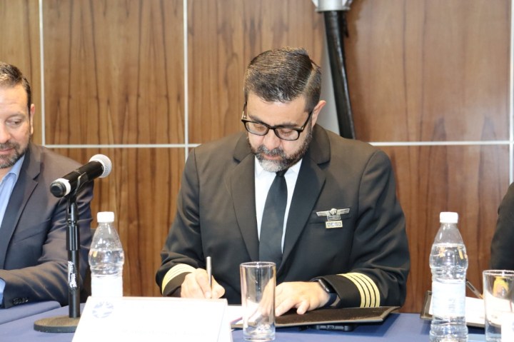 Durante la conmemoración del 105 aniversario del natalicio del capitán Andrés Fabre Tirán, piloto fundador y primer secretario general de nuestro sindicato, Aspa de México y Praat Escuela de Vuelo, firmamos el convenio para crear la beca de aviación “Capitán Andrés Fabre Tirán”.
