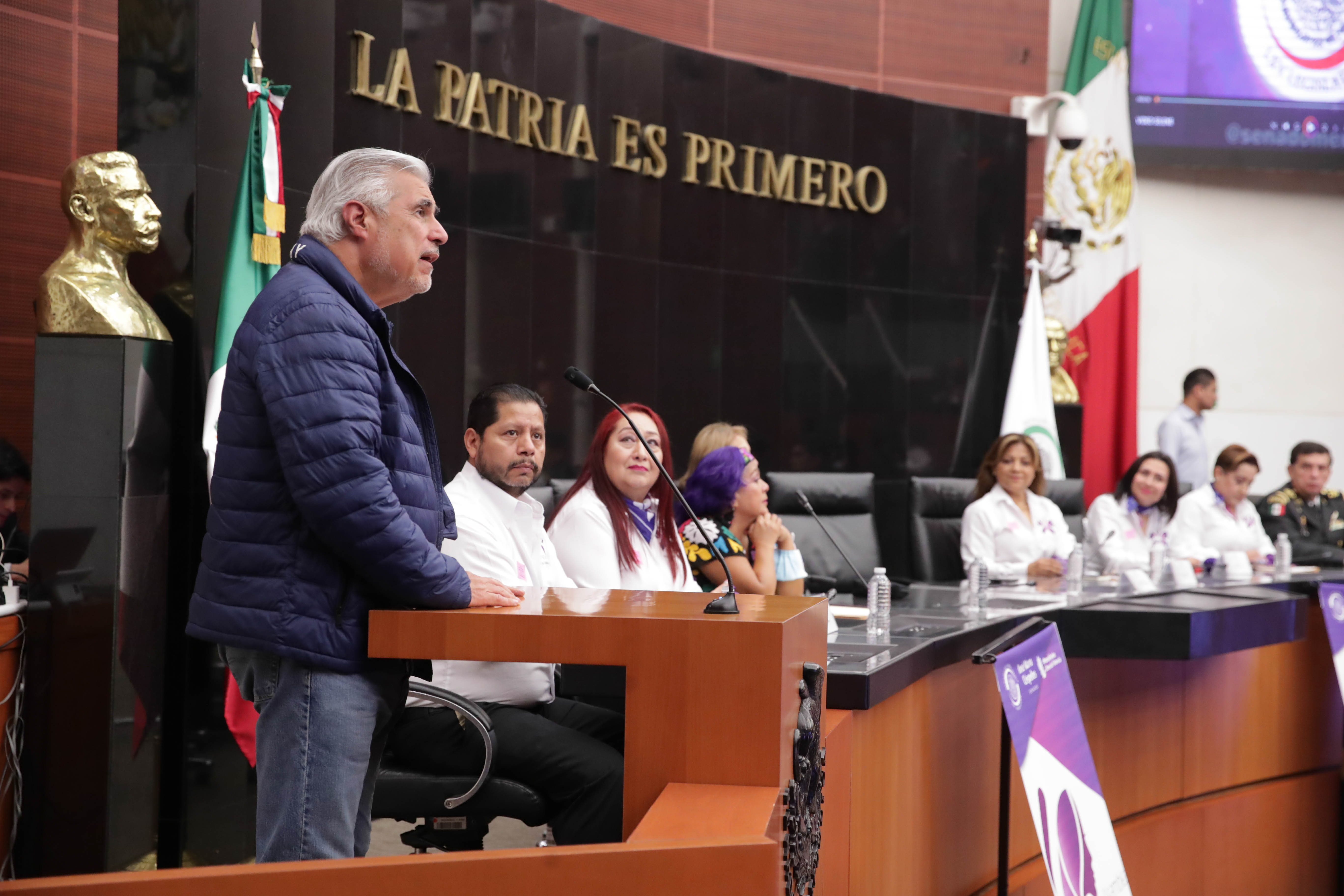 El senador José Narro Céspedes, secretario de la Mesa Directiva del Senado, llamó a erradicar los feminicidios y combatir la violencia económica, sexual, psicológica, emocional y vicaria en contra de las mujeres.