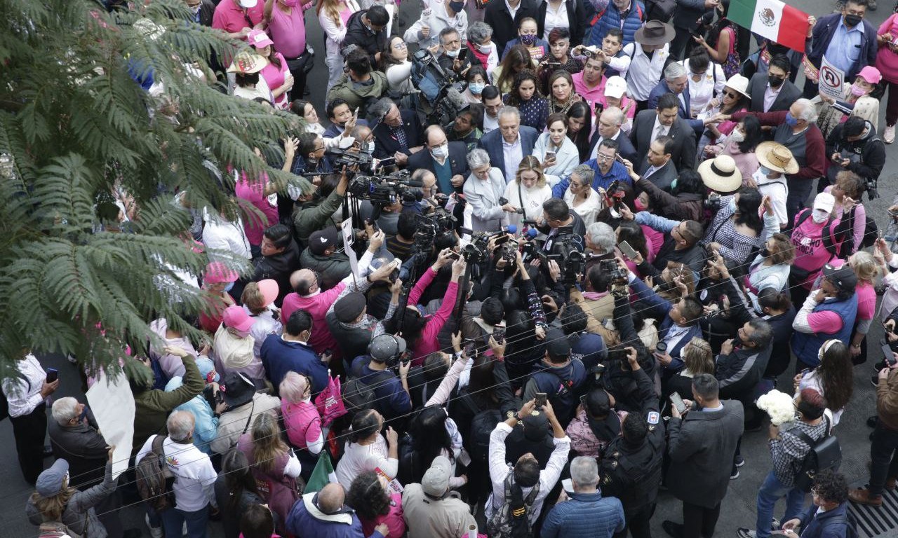 Cientos de ciudadanos participaron en la «manifestación rosa» en las afueras del Senado, contra el Plan B Electoral de Morena, bajo las consignas: «¡El INE no se toca!», «¡A eso vine, a defender al INE!» y «¡López Obrador ya pareces dictador!», en contra de la reforma electoral enviada por el Ejecutivo federal para modificar y destruir al árbitro electoral.