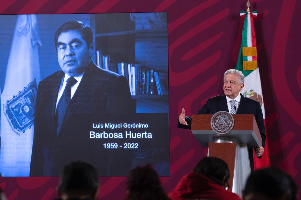 El presidente Andrés Manuel López Obrador viajará a Puebla para asistir al homenaje de cuerpo presente a Miguel Barbosa Huerta, quien fungía como gobernador del estado y falleció la tarde del martes.