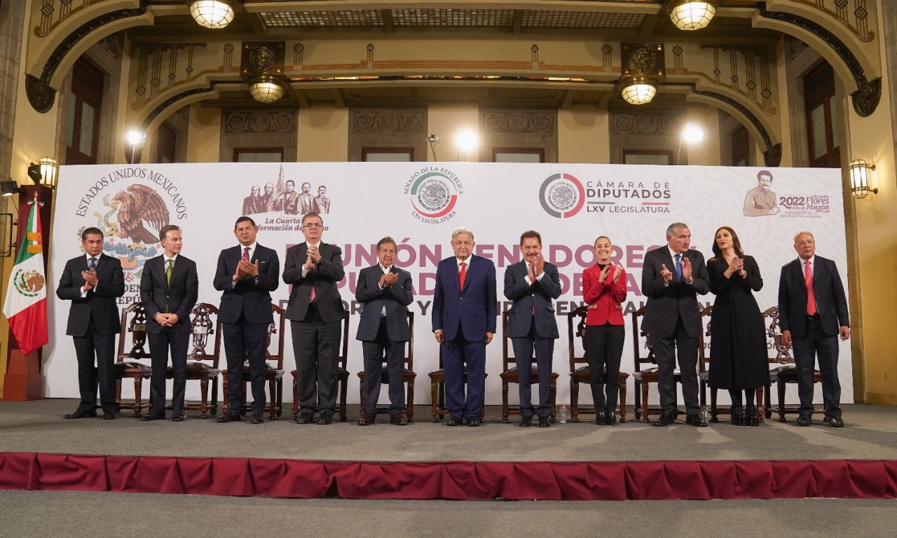El presidente Andrés Manuel López Obrador sostuvo en Palacio Nacional una reunión con legisladores federales, donde reconoció su esfuerzo por consolidar reformas a favor del pueblo de México.