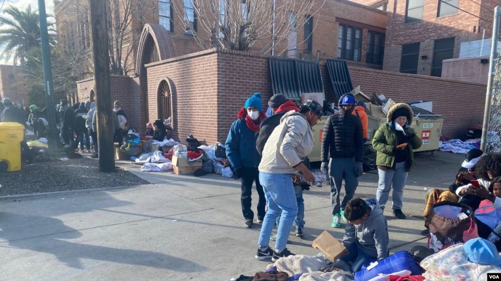 “Somos una familia que queríamos hacer algo por nuestra gente. El día de hoy que está haciendo tanto frío, queríamos hacer un poquito para ayudarles. Nos dijeron que trajéramos burritos, sodas, leche y calcetines”, explicó a la VOA Blanca García, residente del área, quien se encontraba en un campamento improvisado de migrantes.