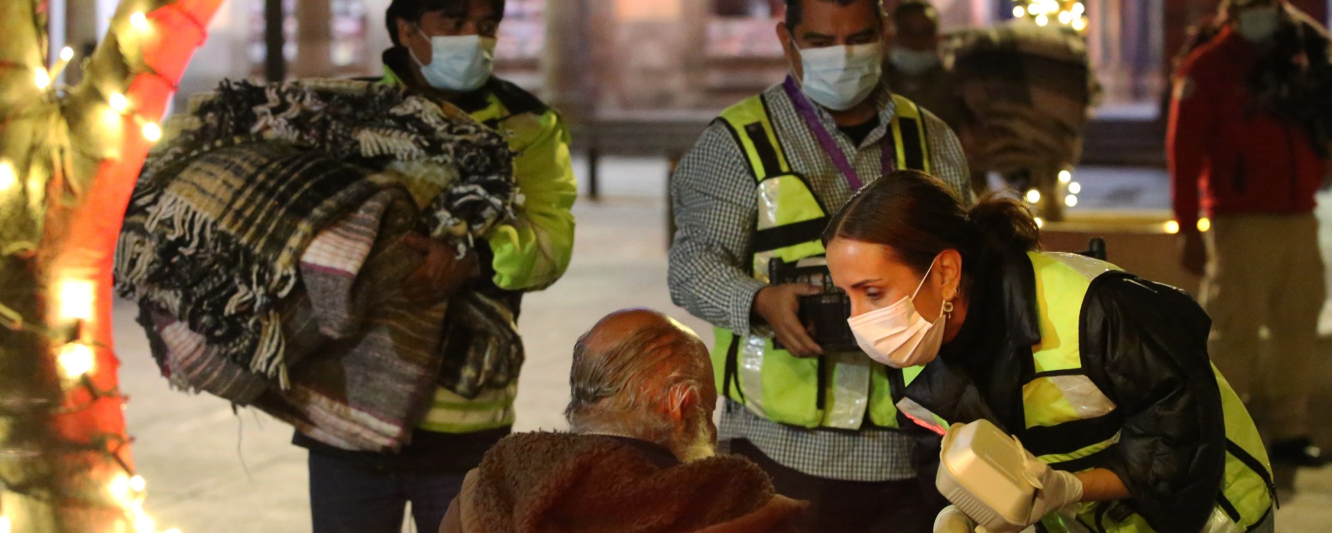 Guadalajara, Jalisco.- A través de las Brigadas Invernales se brinda ayuda asistencial con alimentos y bebidas calientes, cobijas y ropa abrigadora, así como ofrecer resguardo nocturno en los dos albergues Cadipsic del Municipio