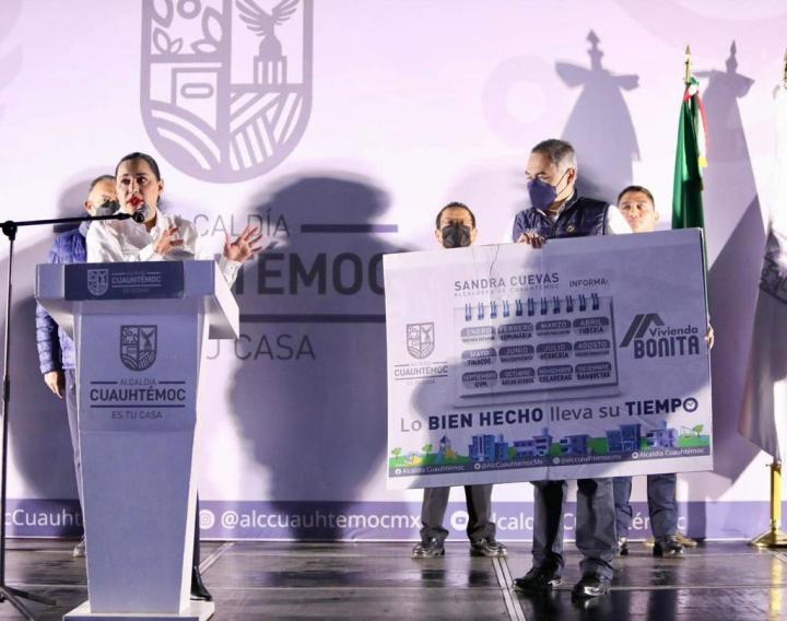 Sandra Cuevas, alcaldesa de Cuauhtémoc, presentó el Programa de Vivienda Bonita para Unidades Habitacionales de toda la demarcación que incluye atender las necesidades de estás mediante un programa calendarizado para que cada mes haya avances hasta concluir el año.