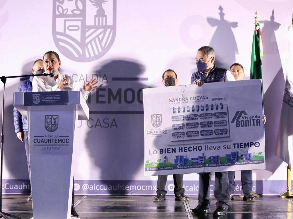 Sandra Cuevas, alcaldesa de Cuauhtémoc, presentó el Programa de Vivienda Bonita para Unidades Habitacionales de toda la demarcación que incluye atender las necesidades de estás mediante un programa calendarizado para que cada mes haya avances hasta concluir el año.
