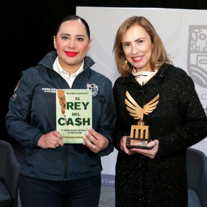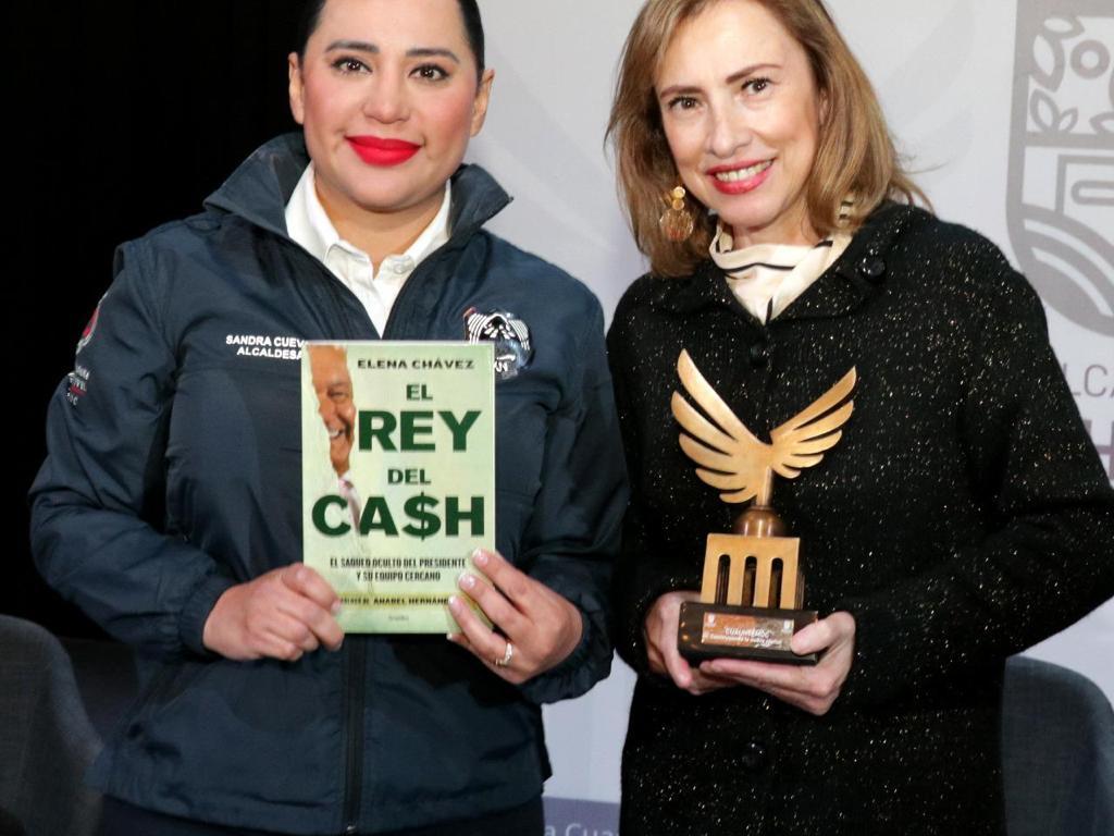 La alcaldesa Sandra Cuevas entrega las «Alas de Cuauhtémoc» a Elena Chávez, autora de «El Rey del Cash»