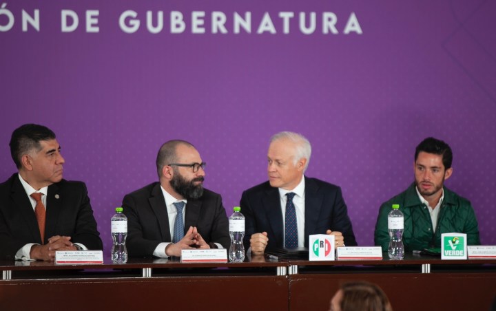 “Nos reunimos con el compromiso de evitar que se generen disputas mezquinas, que surjan fuerzas ajenas a la política y se presenten actos ilegales, engaños e intolerancia”, afirmó ante los dirigentes partidistas que firmaron este acuerdo en la sede del Instituto Electoral del Estado de México (IEEM).