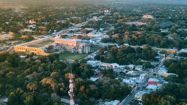 El presidente Andrés Manuel López Obrador continúa en el sureste del país supervisando la construcción del Tren Maya. Hoy sobrevoló el pueblo de Izamal en Yucatán.