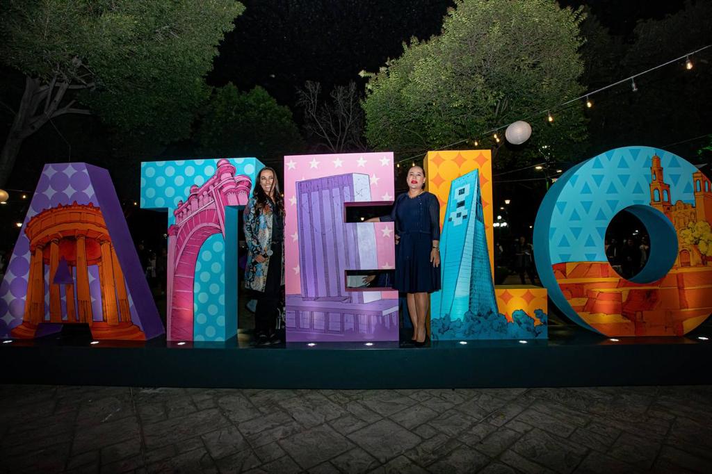 Sandra Cuevas, alcaldesa de Cuauhtémoc, acompañada de la actriz Consuelo Duval inauguró las letras Monumentales de Tlatelolco, que representan la historia de esta unidad habitacional de 90 edificios.