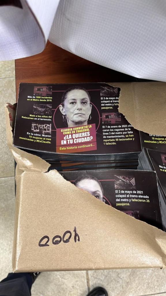 La propaganda encontrada se detectó tras el accidente en la Línea 3 del Metro, misma que era dada en mano a los usuarios donde se busca denostar la imagen de la mandataria capitalina. –sn–