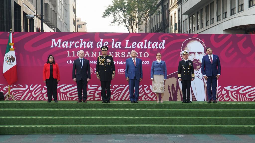 Más tarde, los titulares de los tres poderes de la Unión hicieron el mismo recorrido histórico y avanzaron por la calle de Francisco I. Madero hasta llegar a la explanada del Zócalo capitalino, lugar donde se realizó la ceremonia oficial, de índole militar, que recuerda la «Marcha de la lealtad». –sn–