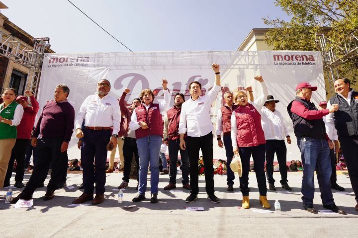 “Hoy, a un día de terminar el periodo de precampaña estamos muy orgullosos porque aquí estamos todas y todos juntos, en torno a un gran proyecto y en torno a una extraordinaria persona, que todos los días nos llama a la unidad. Una persona en la que el Estado de México ha depositado su confianza, Delfina Gómez Álvarez. Ella es lo opuesto a lo que ha sido la clase política en la entidad”, señaló.