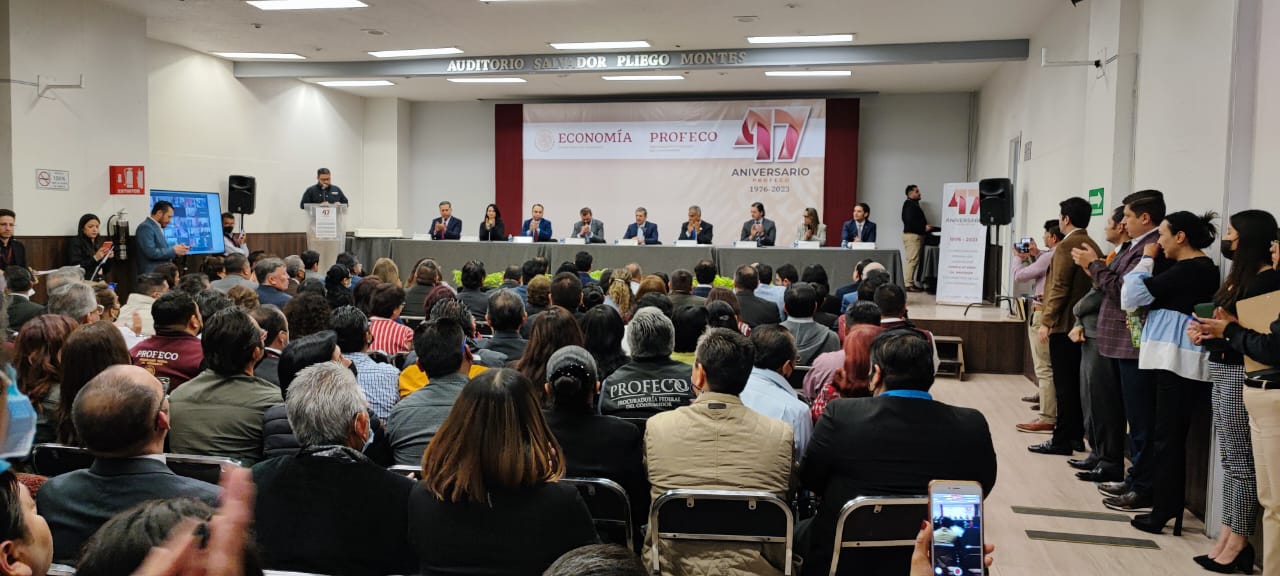 Mencionó particularmente a aquellos trabajadores “que han dejado huella en esta historia de 47 años” de la Profeco.