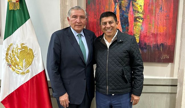 Adán Augusto López Hernández, titular de la Secretaría de Gobernación (Segob), recibió al gobernador de Oaxaca y presidente de la Conferencia Nacional de Gobernadores (Conago), Salomón Jara Cruz.