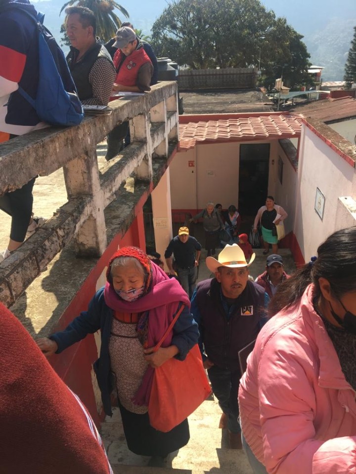 San Bartolo Tutotepec, Hidalgo.- Una comisión de campesinos y pertenecientes a las distintas comunidades del municipio de San Bartolo Tutotepec, afiliados al Movimiento Antorchista, acudieron a las instalaciones de la presidencia municipal para exigir que el presidente Santos Cabrera Hernández atienda sus demandas pendientes solicitadas en el pliego petitorio ingresado al inicio de su administración.