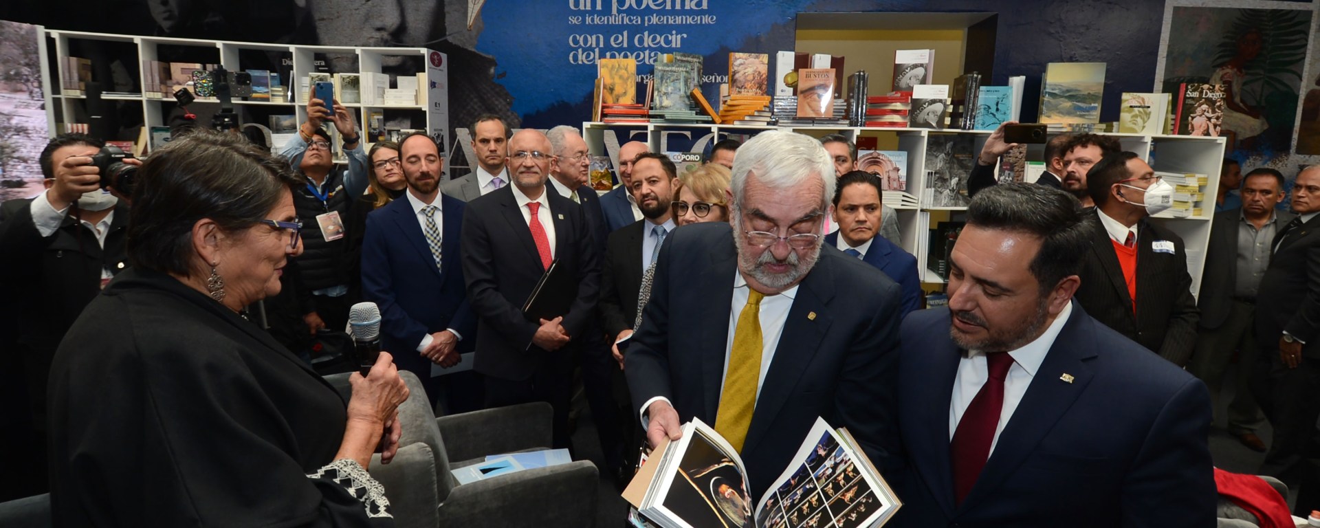 “Después de dos ediciones virtuales, nos alegra que la Feria Internacional del Libro del Palacio de Minería tenga un feliz reencuentro, cara a cara, con todos los que esperábamos que abriera nuevamente sus puertas”, agregó ante el director de la Feria, Fernando Macotela Vargas.