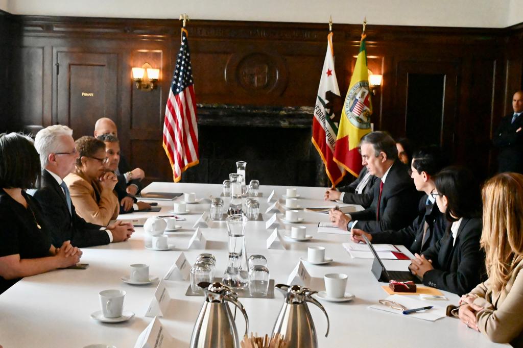 Posteriormente, Bass y Ebrard encabezaron una reunión con 50 alcaldes de México, con quienes destacaron los lazos familiares, culturales y económicos que vinculan a California con nuestro país.