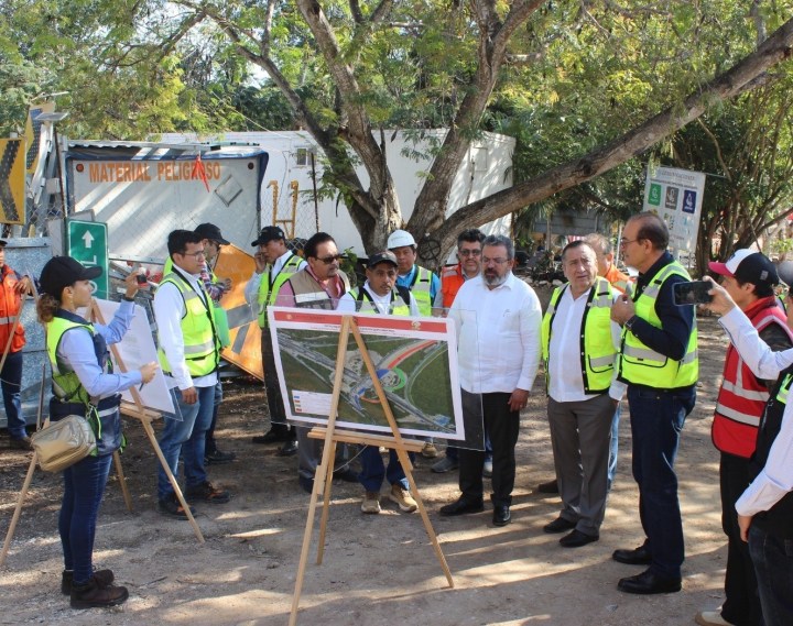 Acompañado por el subsecretario de Infraestructura, Felipe Verdugo López, y el director general del Centro SICT Quintana Roo, Guido Mendiburo Solís, constató los avances del Distribuidor Aeropuerto, del Bulevar Luis Donaldo Colosio y del Puente Vehicular Nichupté.