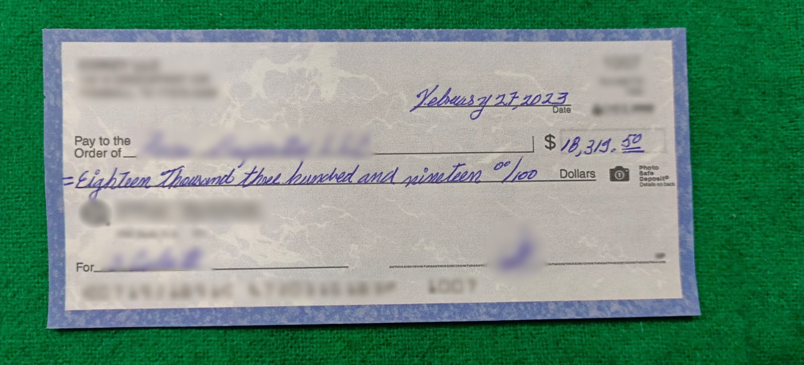 Aseguran cheque por aproximadamente 300 mil pesos